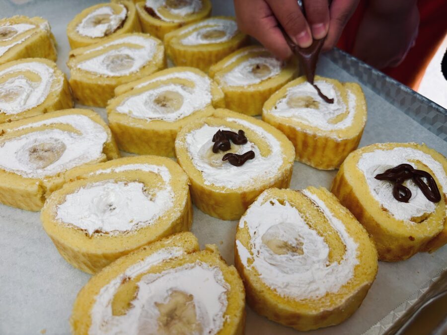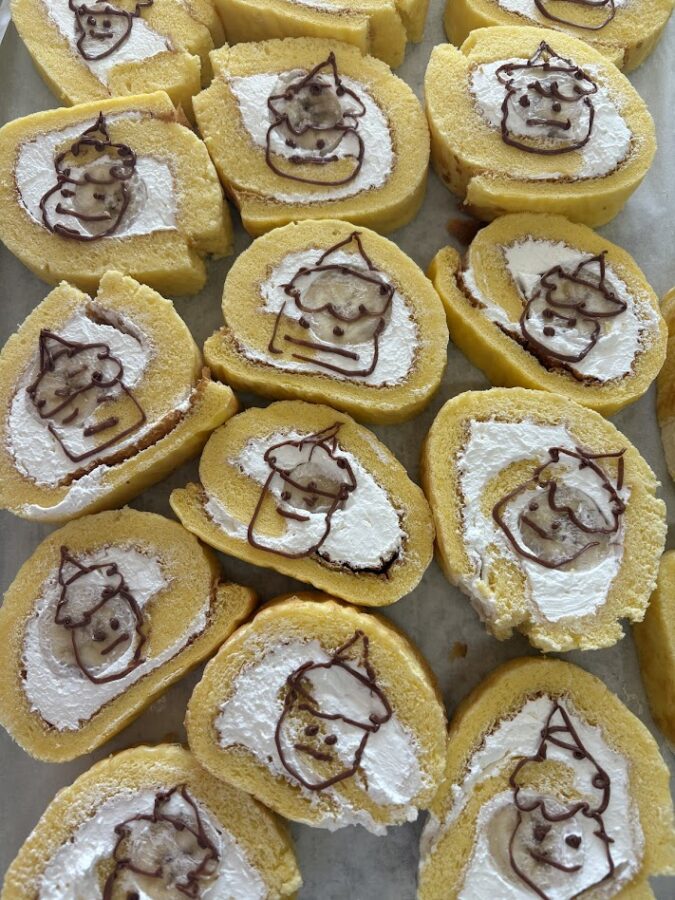 節分ロールは生地から手作りしました。中にバナナが丸ごと入っています。