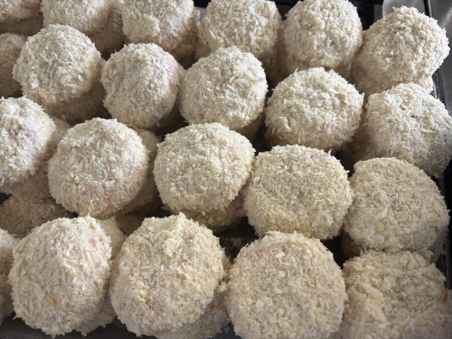 じゃがいもにひき肉、人参を入れて約150個作りました。